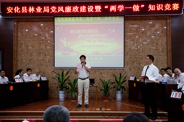 9月28日,365比分网举办了"党风廉政建设暨两学一做"知识抢答赛,由局机关、执法大队、林业站、场圃所组成的8支队的24名选手参加比赛。县委宣传部、组织部、县纪委、县总工会、县创卫办等领导应邀观摩比赛。