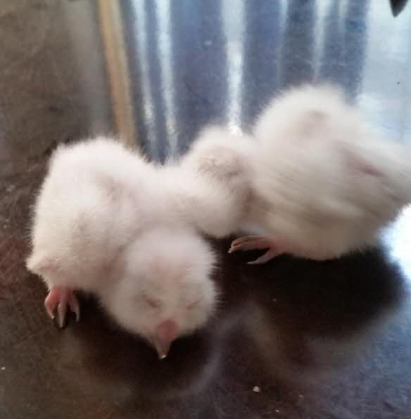2017年4月22日晚上10时许,安化县清塘镇一村民曾某在屋后山上发现一人员在用网捕猎,他大声喊道:"是谁?干什么?",捕猎人立即逃离现场,曾某上山一看发现一猫头鹰在网内乱跳,另外还有鹰蛋四枚。23日早晨将鹰和蛋送往当地林业站。鹰在村民及森林派出所民警、林业站工作人员的监督下,在1公里处的山头予以放生。23日下午将四枚鹰蛋送往梅城,在梅城林业站的配合下找到梅山野鸡养殖场进行人工孵化,经过10多天分别于5月12日、14日两只小鹰脱壳而出,梅城林业站副站长肖光强自制烘温箱将两只小鹰进行细制辅食成长,估计30天后可放生大自然。